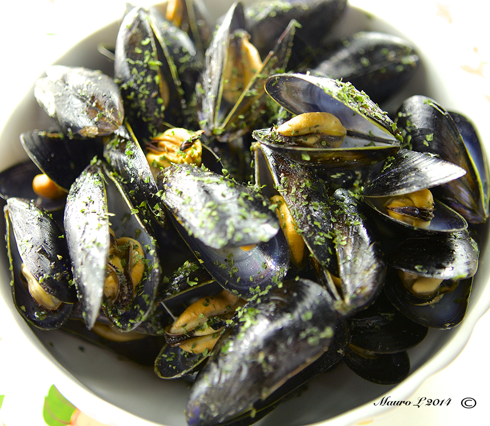 prendere una casseruola mettere un po di olio e l'aglio in camicia farlo soffriggere poi mettete le cozze e il vino bianco far andare per qualche minuto e coprire far cuocere pel circa 5 minuti a fine cottura mettete il pepe e il prezzemolo